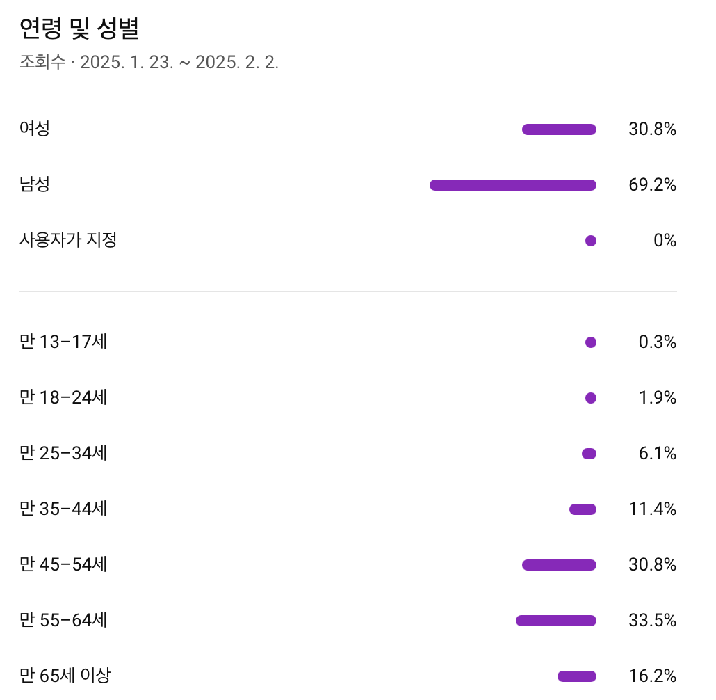 아무래도 이건 주 시청층이 40대~60대 사이에 포진해 있어서 구독자 전환률이 높은 것 같습니다.