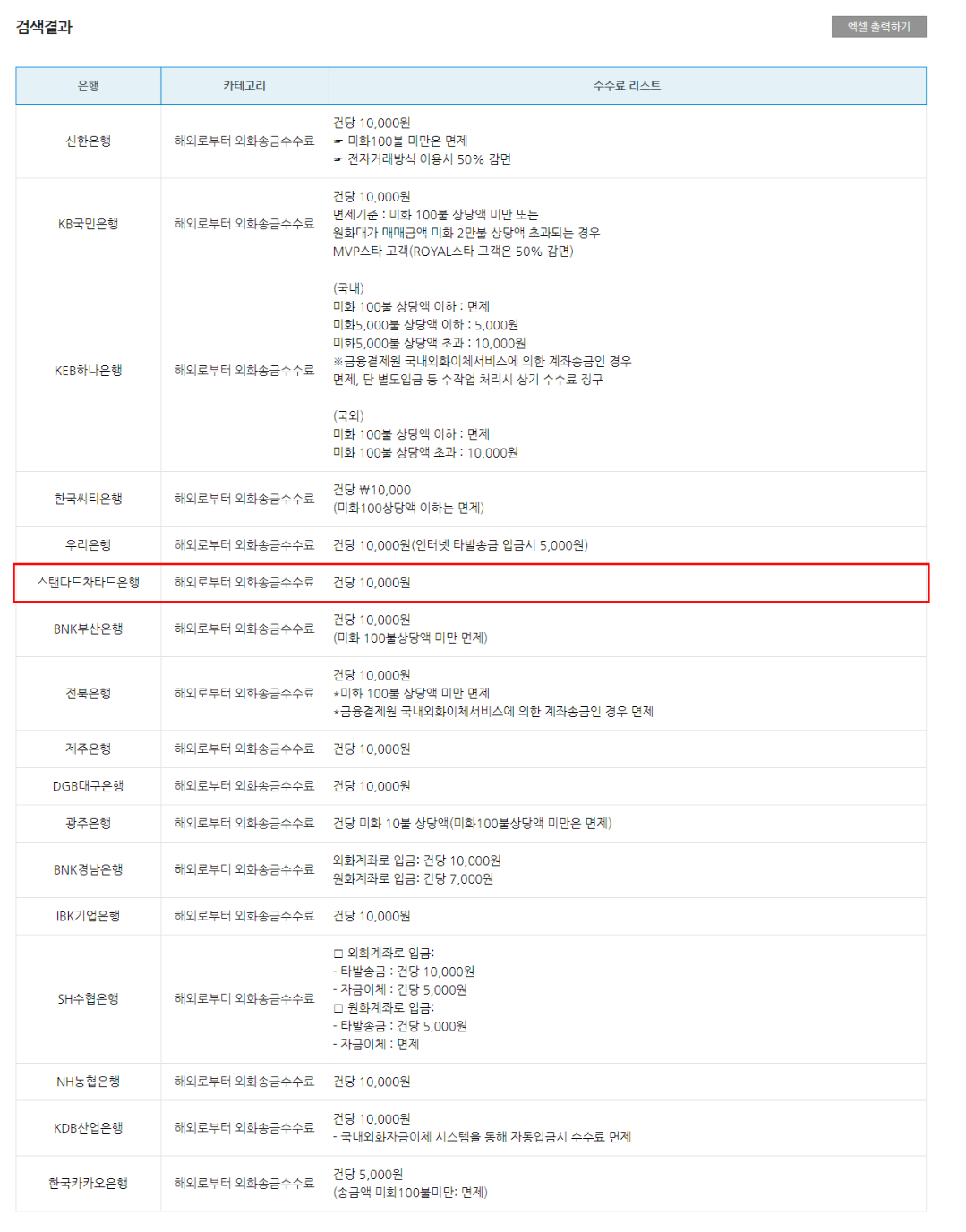 은행 전국 연합회에 가시면 수수료를 비교해볼 수 있습니다.