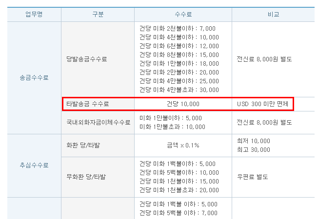 그러면 이런 창이 뜨는데 여기서 주목할 점은 타발송금 수수료입니다.