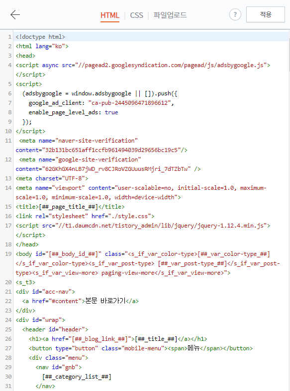 HTML 편집을 해야 하지만 복잡하지 않고 간단한 내용이니 겁먹지 마시고 따라 해 보시기 바랍니다.