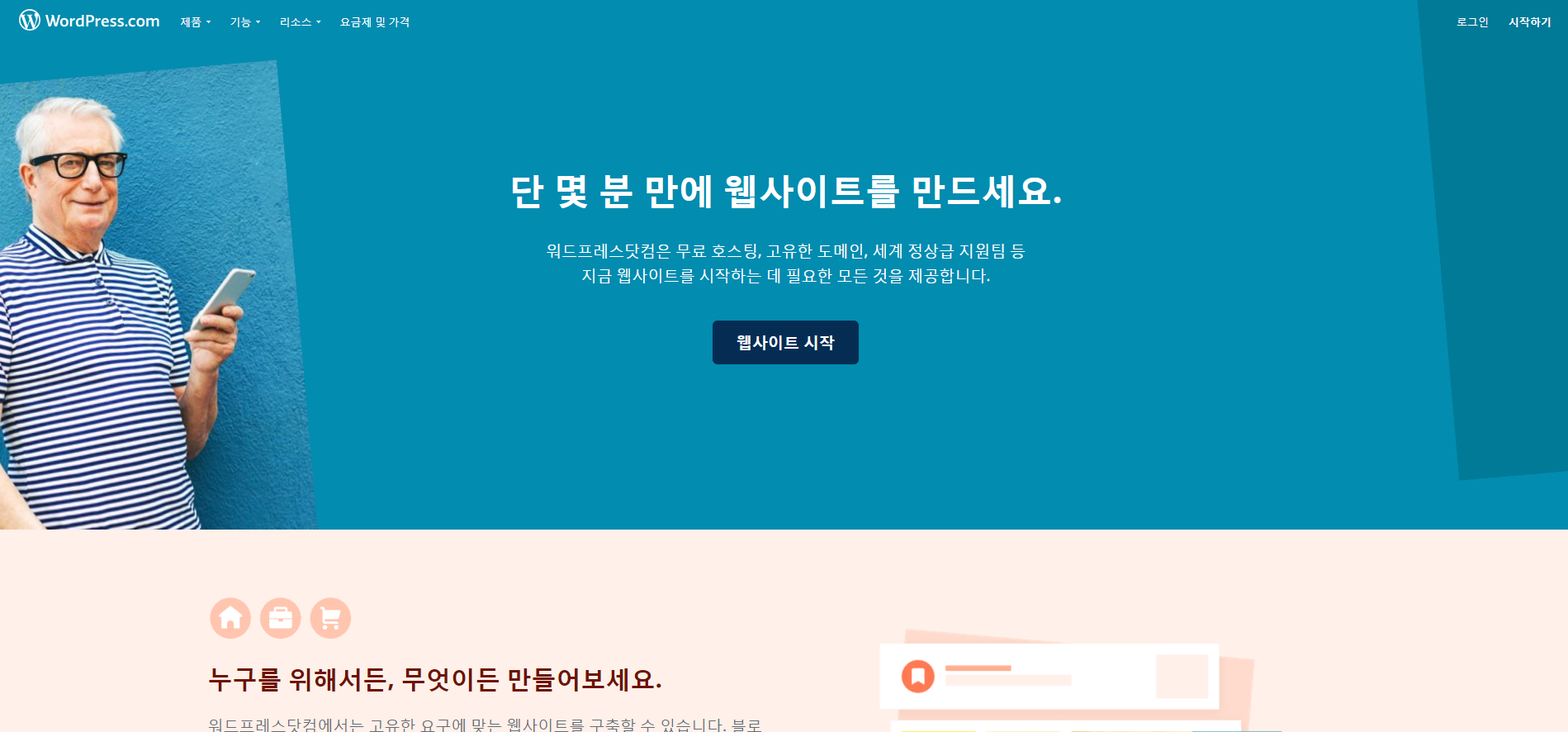 아래쪽에 보이는 "누구를 위해서든, 무엇이든 만들어보세요." 라는 문구가 아주 마음에 든다.