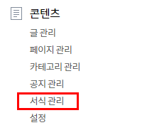 일단 서식을 만들기 위해서는 관리자 페이지 메뉴에서 서식 관리에 들어가야 합니다.
