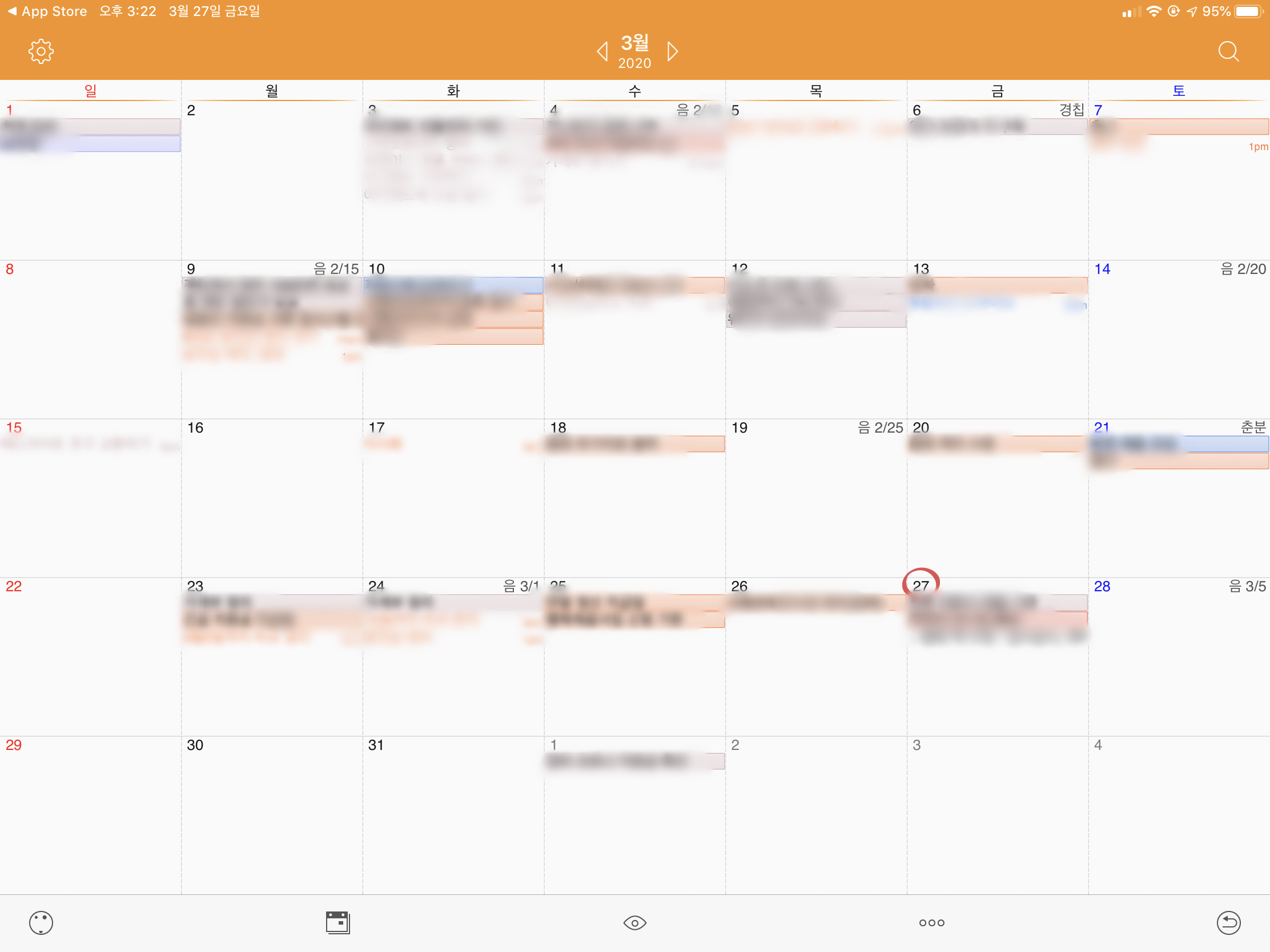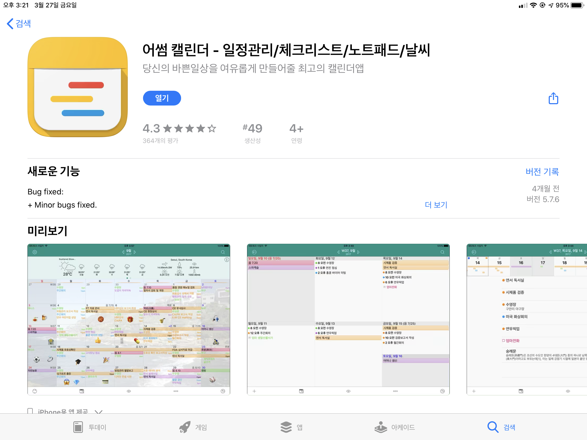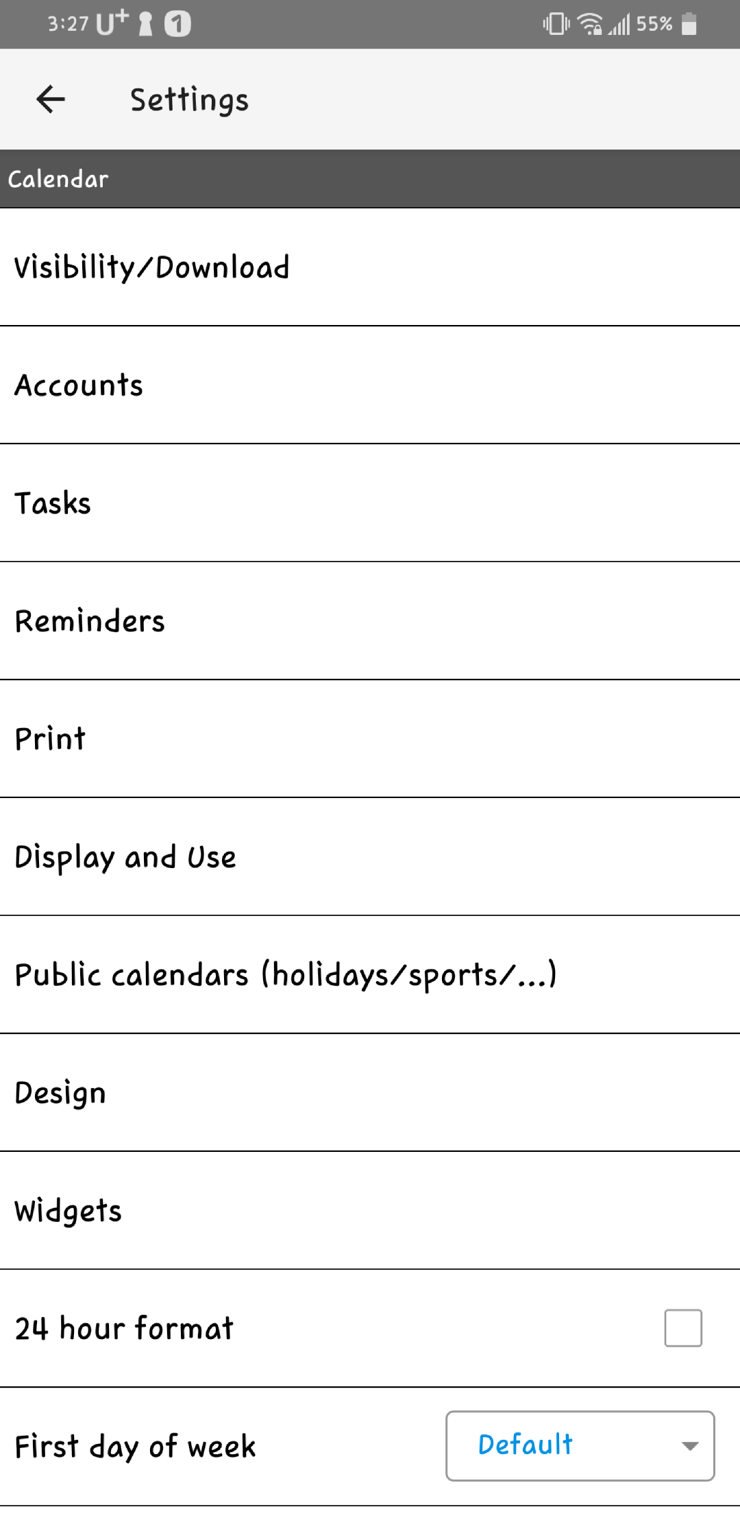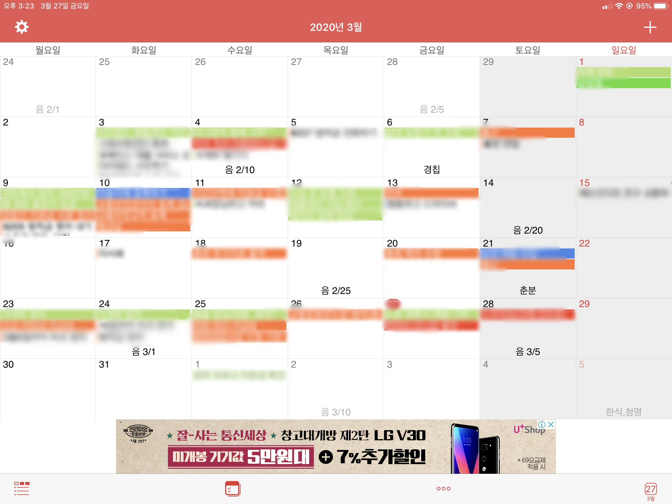 어쩔수 없이 유료 어플을 찾아보던 중.... 역시 대세는 대세인지 어썸 캘린더에서 해결책을 찾았습니다.