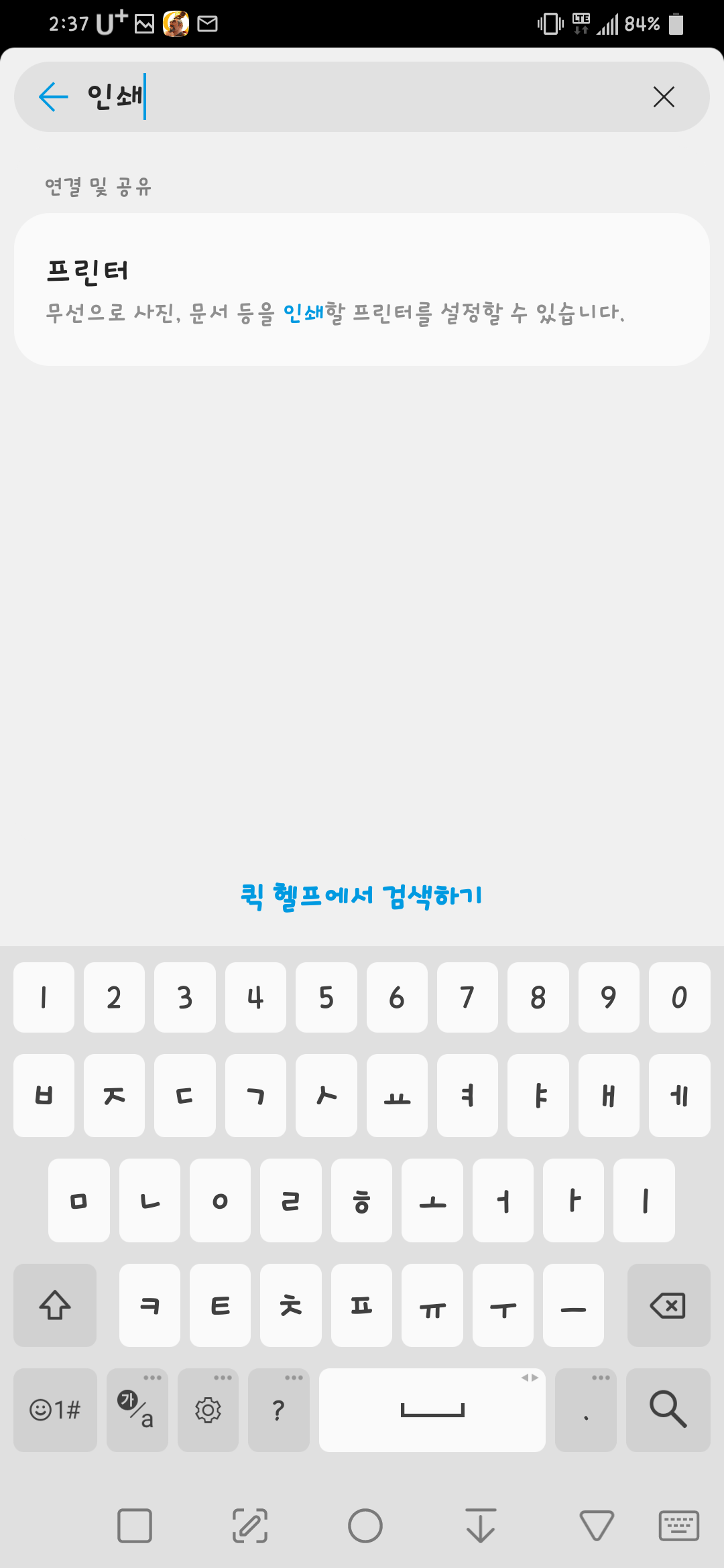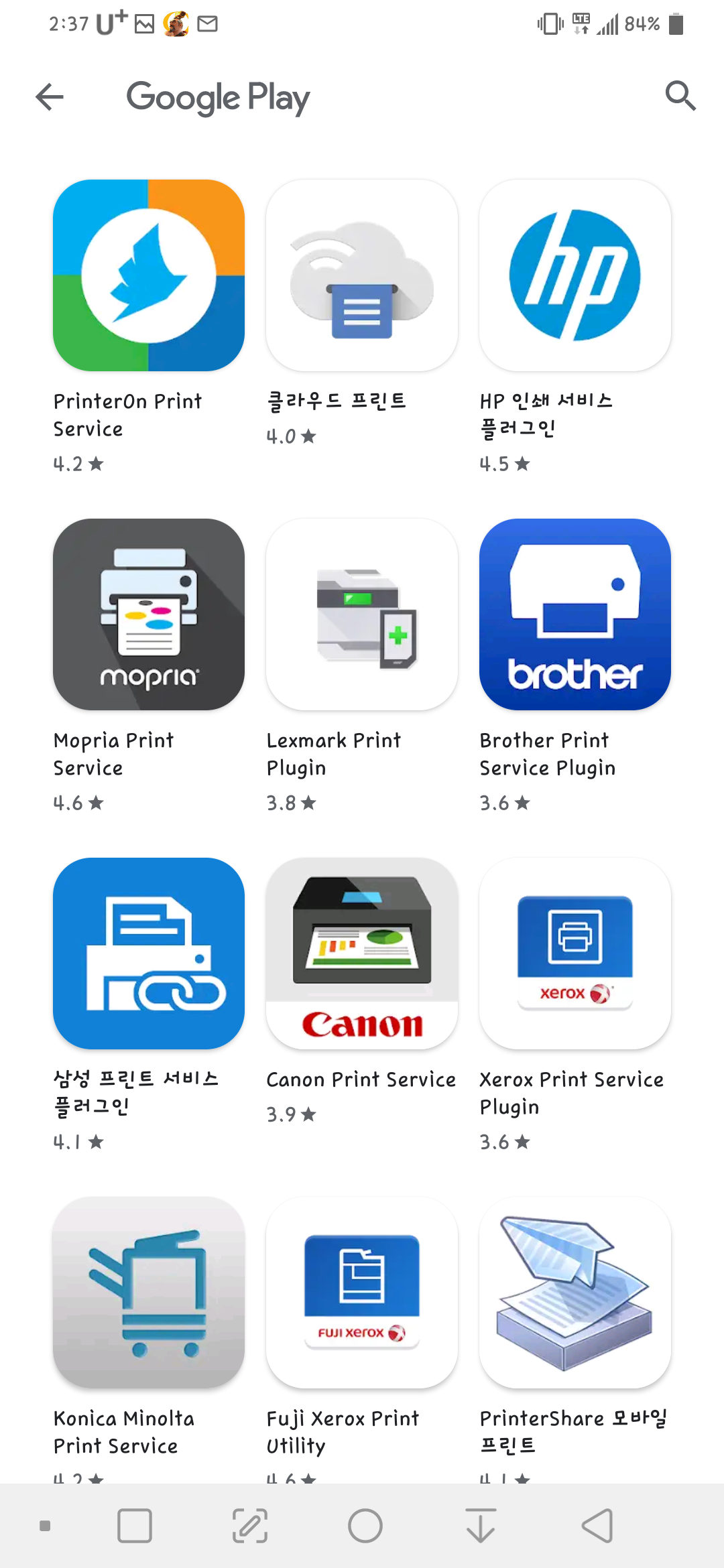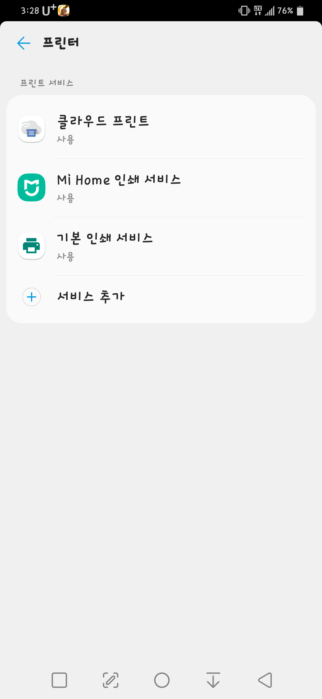 먼저 스마트폰 설정에서 인쇄 혹은 프린터를 검색하거나 플레이스토어에서 클라우드 프린트를 검색합니다.