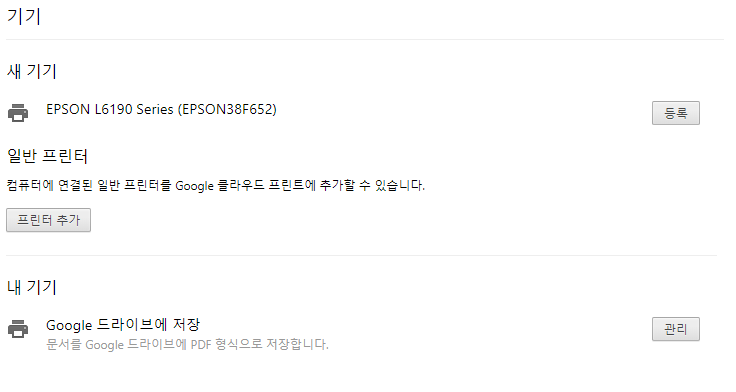 일반 프린터는 크롬을 사용해서 등록이 가능합니다.