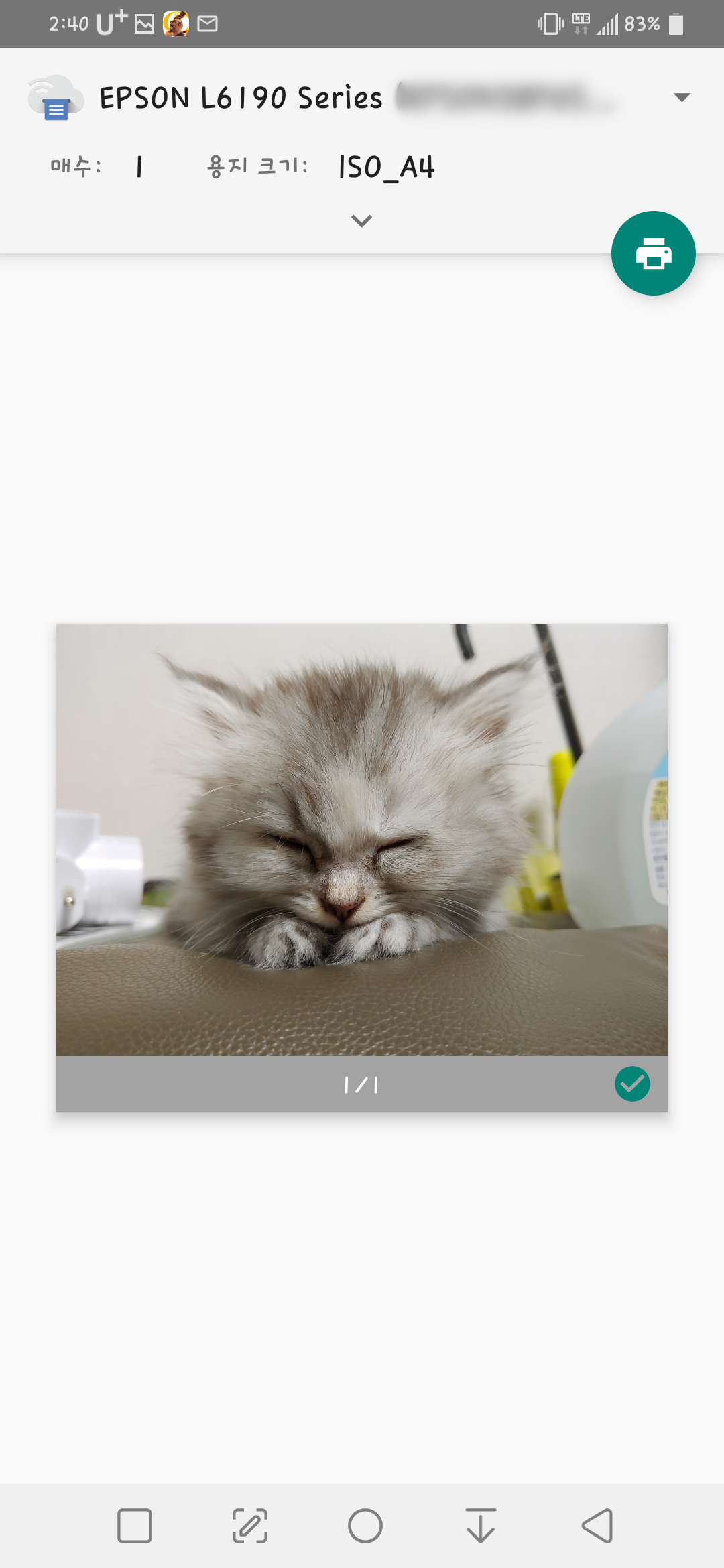 사진에서 인쇄를 진행하면 이런 화면이 나옵니다.
