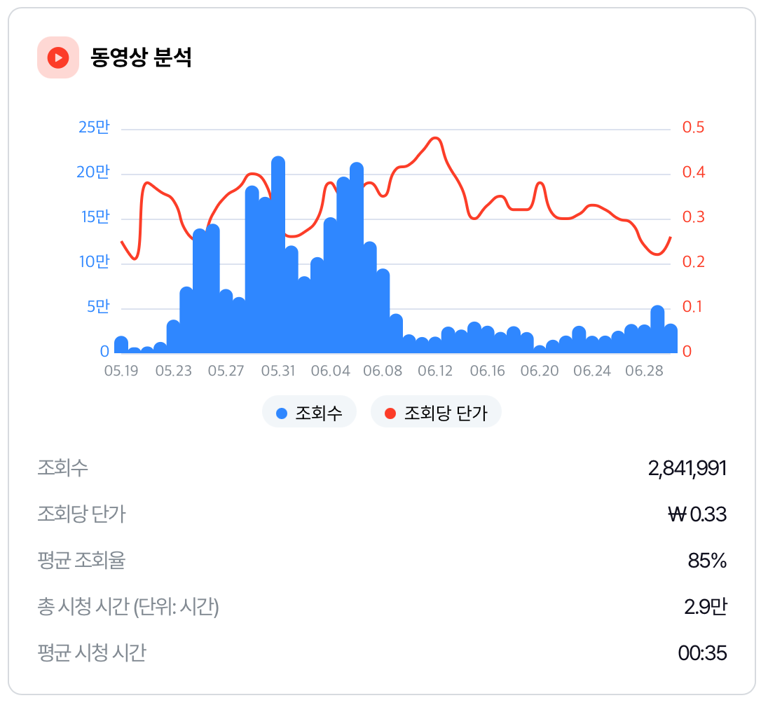 음원 수익에서는 시청시간(음원 재생시간)과 프리미엄 조회수가 중요한데, 타겟층이 잘 설정되서 시청시간이 잘 나오고 프리미엄 조회수가 많다면 꽤나 괜찮은 수익을 기대해 볼 수 있습니다.